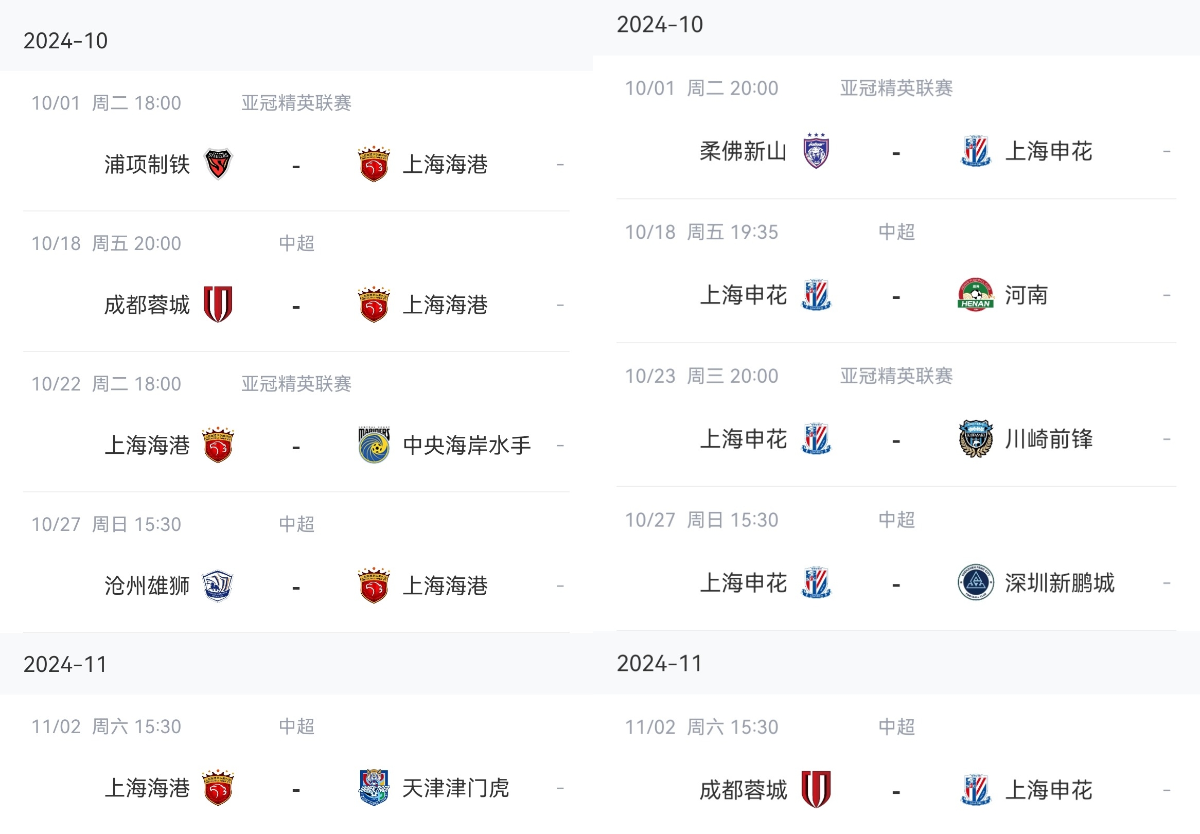 上海双雄中超争冠白热化,出战亚冠一个单场5射正一个单场0射正