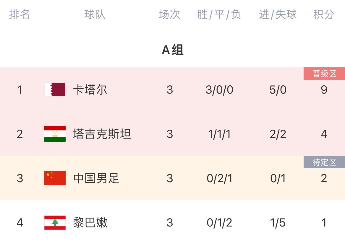 11月20日讯 世预赛6轮战罢,国足在C组2胜4负积6分,进了6球排在第6位。