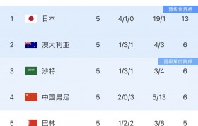 18强赛积分榜:国足两连胜6分第4,日本轰19球丢1球&13分断层领跑