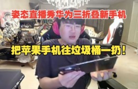 姿态直播秀华为三折叠新手机:转头就把苹果手机扔垃圾桶了!