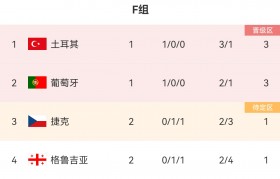 冠军:欧洲杯F组积分榜:格鲁吉亚、捷克2轮积1分 葡萄牙、土耳其小组第一